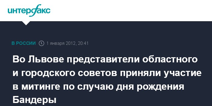 Львов. 1 января. INTERFAX.RU - Около тысячи человек собрались во Львове на митинг, посвященный 103-й годовщине со дня рождения лидера Организации украинских националистов (ОУН) Степана Бандеры.