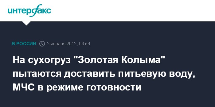 На сухогруз "Золотая Колыма" пытаются доставить питьевую воду, МЧС в режиме готовности