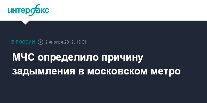 Москва. 2 января. INTERFAX.RU - Причиной задымления на станции "Коломенская" московского метро стало короткое замыкание, сообщили "Интерфаксу" в пресс-службе ГУ МЧС России по Москве. "Причиной задымления стало короткое замыкание в компенсационном ящике. Последующего горения не обнаружено", - сказал сотрудник пресс-службы.