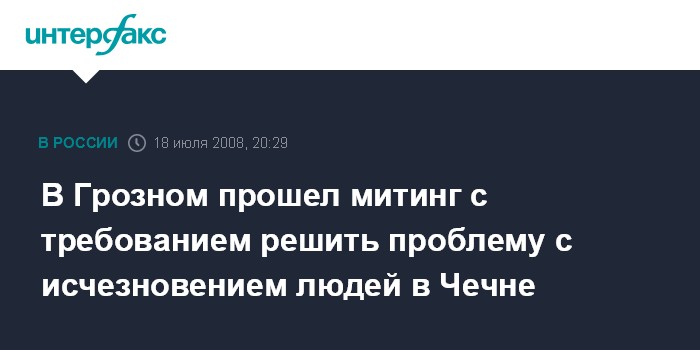 Грозный. 18 июля. ИНТЕРФАКС - В центре Грозного в пятницу состоялся митинг, в котором приняли участие родственники похищенных и пропавших без вести жителей Чечни и представители неправительственных правозащитных организаций.