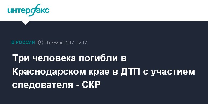 Москва. 3 января. ИНТЕРФАКС - Следственным управлением Следственного комитета Российской Федерации по Краснодарскому краю возбуждено уголовное дело по факту гибели трех человек в ДТП с участием краснодарского следователя, сообщил "Интерфаксу" официальный представитель ведомства Владимир Маркин.