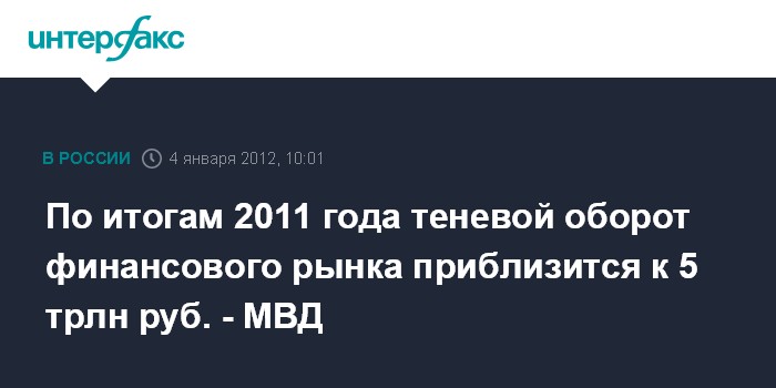 По итогам 2011 года теневой оборот финансового рынка приблизится к 5 трлн руб. - МВД