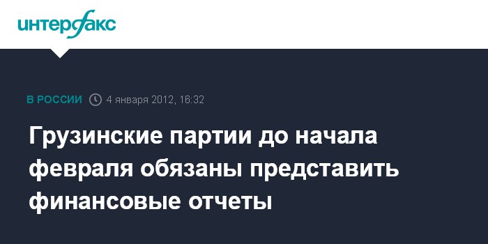 Л.Бежашвили сообщил, что первые финансовые отчеты политические партии должны представить к 1 февраля. В документе, в том числе, должны быть представлены данные о пожертвованиях, минимальная сумма которых составляет 5 тысяч лари (3 тысячи долларов).