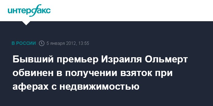 Бывший премьер Израиля Ольмерт обвинен в получении взяток при аферах с недвижимостью