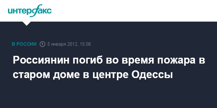 Киев. 5 января. INTERFAX.RU - Житель России погиб во время пожара в Одессе.