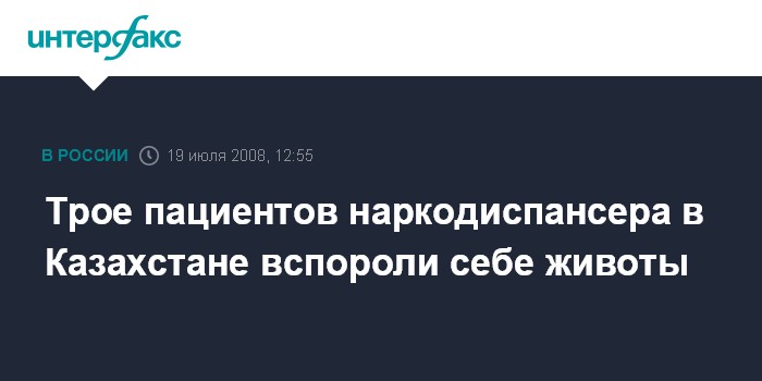 Москва. 19 июля. INTERFAX.RU - В Павлодаре (адмцентр Павлодарской области Казахстана, на севере) в областном центре профилактики и лечения зависимых заболеваний трое пациентов вспороли себе животы.