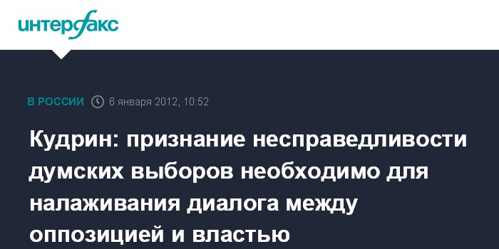 Кудрин: признание несправедливости думских выборов необходимо для налаживания диалога между оппозицией и властью