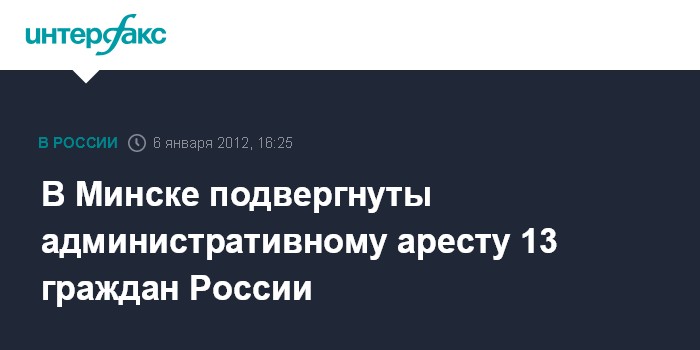 Минск. 6 января. INTERFAX.RU - Суд Ленинского района Минска приговорил к административному аресту 13 граждан Российской Федерации за мелкое хулиганство, после отбытия наказания они будут депортированы из страны, сообщили агентству "Интерфакс-Запад" в пресс-службе ГУВД Мингорисполкома.