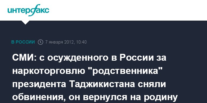 СМИ: с осужденного в России за наркоторговлю "родственника" президента Таджикистана сняли обвинения, он вернулся на родину