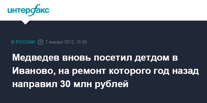 Медведев вновь посетил детдом в Иваново, на ремонт которого год назад направил 30 млн рублей