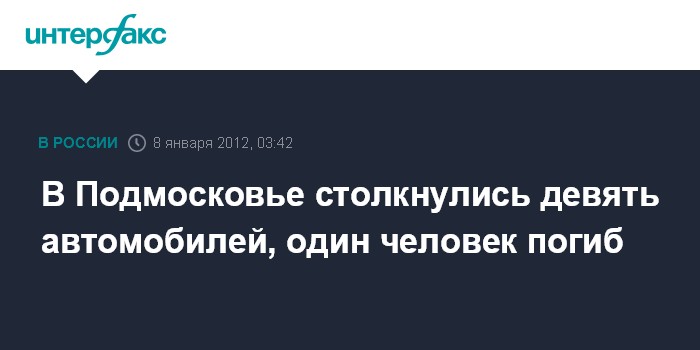 Москва. 8 января. ИНТЕРФАКС - Один человек погиб, трое получили ранения при столкновении девяти автомобилей на западе Московской области, сообщил "Интерфаксу" источник в правоохранительных органах.