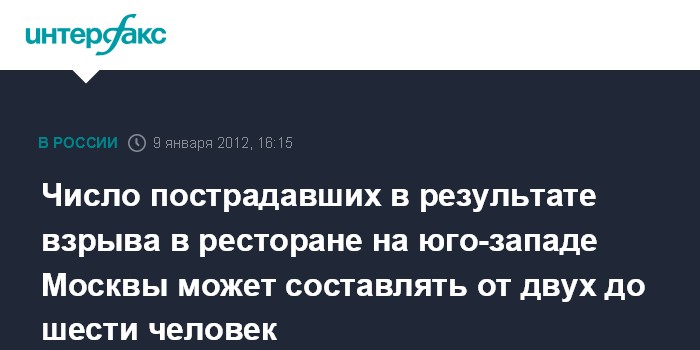 Число пострадавших в результате взрыва в ресторане на юго-западе Москвы может составлять от двух до шести человек