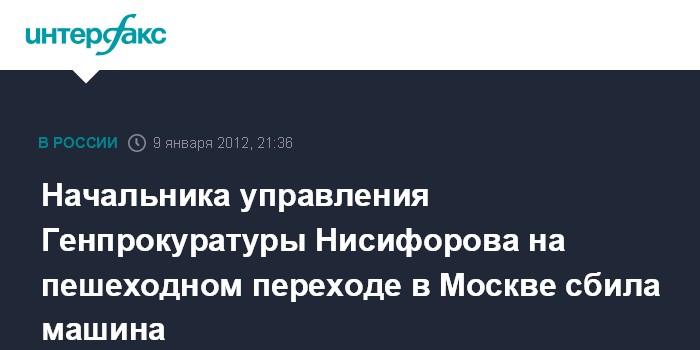 Начальника управления Генпрокуратуры Нисифорова на пешеходном переходе в Москве сбила машина