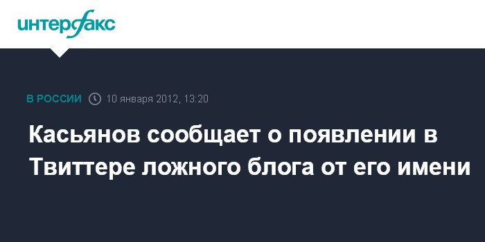 "Заявляю, что появившийся в конце прошлого 2011 года в Твиттере микроблог @M_Kasyanov является фиктивным. Я не имею никакого отношения к этому микроблогу, в котором якобы от моего имени публикуются всякого рода провокационные заявления и суждения", - сказал Касьянов во вторник "Интерфаксу".