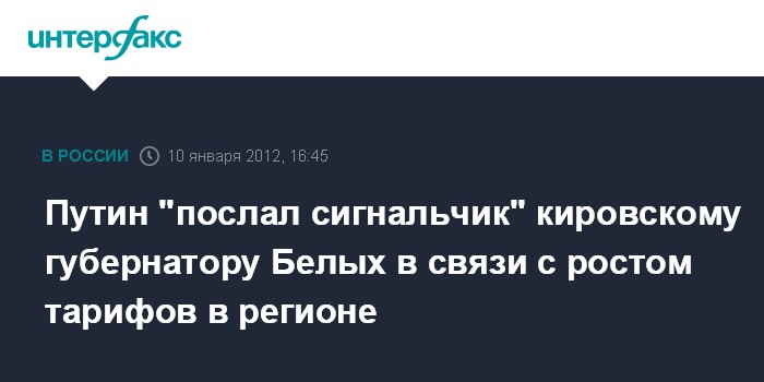 Путин "послал сигнальчик" кировскому губернатору Белых в связи с ростом тарифов в регионе