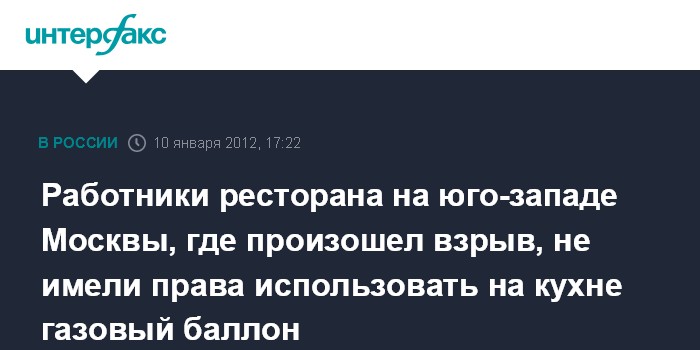Работники ресторана на юго-западе Москвы, где произошел взрыв, не имели права использовать на кухне газовый баллон