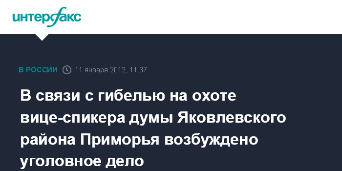 Владивосток. 11 января. INTERFAX.RU - Следствие возбудило уголовное дело по факту гибели на охоте заместителя председателя думы Яковлевского района Приморского края Петра Никейцева.