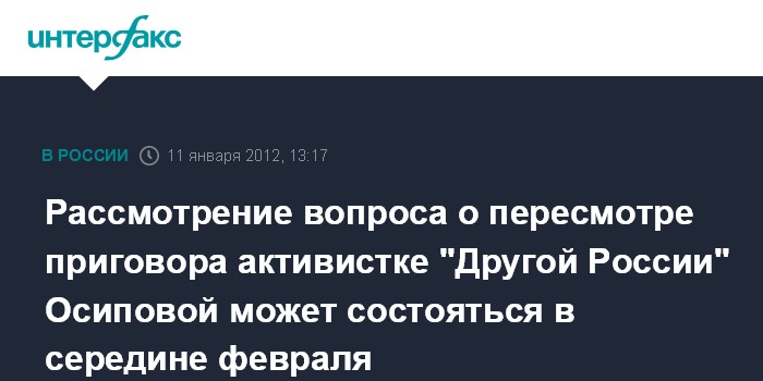 Рассмотрение вопроса о пересмотре приговора активистке "Другой России" Осиповой может состояться в середине февраля