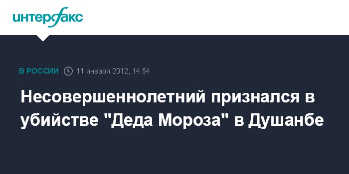 Душанбе. 11 января. INTERFAX.RU - 16-летний житель Душанбе признался в убийстве одетого в костюм Деда Мороза Парвиза Давлатбекова, совершенном в дни праздников, сообщила в среду пресс-служба МВД Таджикистана.