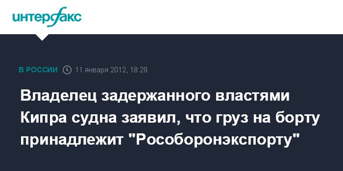 Санкт-Петербург/Лимассол. 11 января. INTERFAX.RU - Судно Chariot, которое было задержано властями Кипра в порту Лимассол, перевозит груз, владельцем которого является "Рособоронэкспорт", сообщили "Интерфаксу" в компании-судовладельце Westberg.