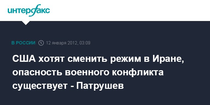 США хотят сменить режим в Иране, опасность военного конфликта существует - Патрушев