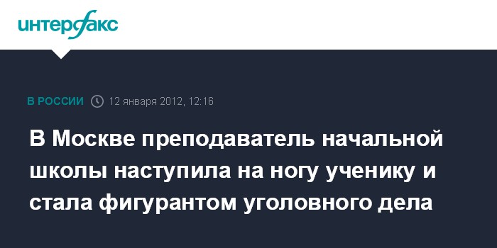 В Москве преподаватель начальной школы наступила на ногу ученику и стала фигурантом уголовного дела