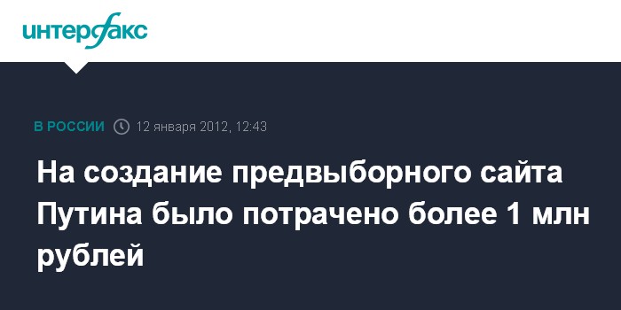 На создание предвыборного сайта Путина было потрачено более 1 млн рублей