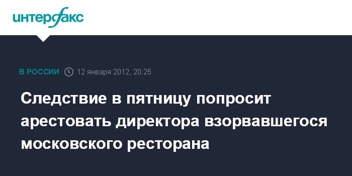 Следствие в пятницу попросит арестовать директора взорвавшегося московского ресторана