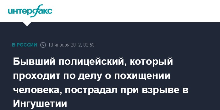 Бывший полицейский, который проходит по делу о похищении человека, пострадал при взрыве в Ингушетии