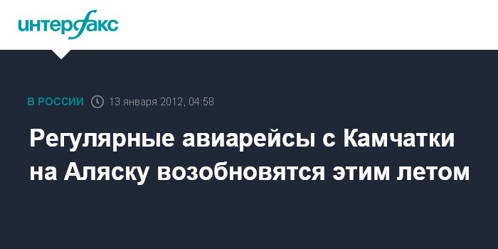 Петропавловск-Камчатский. 13 января. ИНТЕРФАКС-ДАЛЬНИЙ ВОСТОК - "Владивосток Авиа" летом 2012 года планирует возобновить спустя семь лет авиарейс по направлению Петропавловск-Камчатский - Анкоридж (США, штат Аляска).