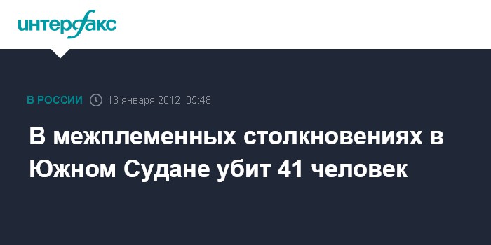 Лондон. 13 января. ИНТЕРФАКС - Представители властей Южного Судана заявили, что более 40 человек, преимущественно - женщины и дети, были убиты во время последних межэтнических столкновений в штате Джонглей, передает Би-би-си.
