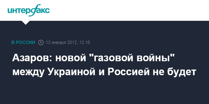 Киев. 13 января. INTERFAX.RU - Премьер-министр Украины Николай Азаров исключает возможность "газовой войны" с Россией.