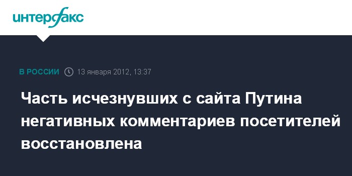 Часть исчезнувших с сайта Путина негативных комментариев посетителей восстановлена
