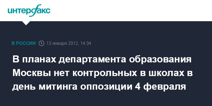 В планах департамента образования Москвы нет контрольных в школах в день митинга оппозиции 4 февраля