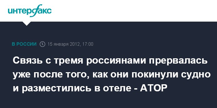 Связь с тремя россиянами прервалась уже после того, как они покинули судно и разместились в отеле - АТОР