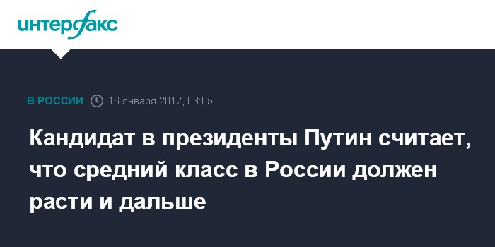 Кандидат в президенты Путин считает, что средний класс в России должен расти и дальше