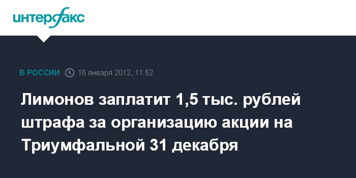 Лимонов заплатит 1,5 тыс. рублей штрафа за организацию акции на Триумфальной 31 декабря