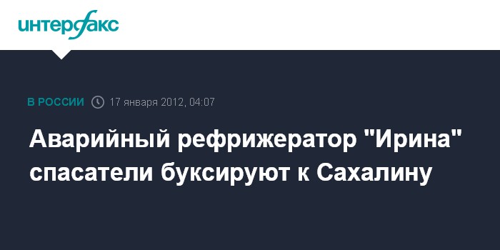 Аварийный рефрижератор "Ирина" спасатели буксируют к Сахалину
