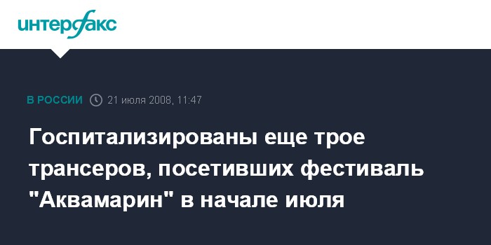 Госпитализированы еще трое трансеров, посетивших фестиваль "Аквамарин" в начале июля