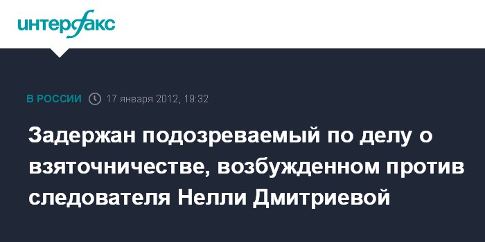 Задержан подозреваемый по делу о взяточничестве, возбужденном против следователя Нелли Дмитриевой