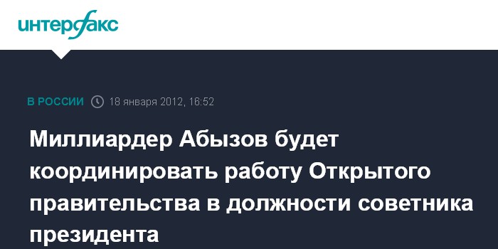 В среду Абызов уже в новом качестве принял участие в совещании у главы государства, посвященном подготовке долгосрочной концепции развития России на период до 2020 года.