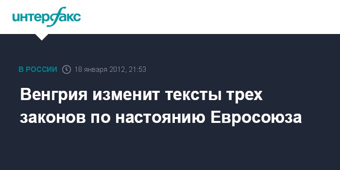 Страсбург. 18 января. INTERFAX.RU- Венгерский премьер-министр Виктор Орбан письменно заверил председателя Европейской комиссии Жозе Мануэла Баррозу, что страна изменит текст трех новых законов, которые не устраивают ЕС, сообщил Баррозу в среду.