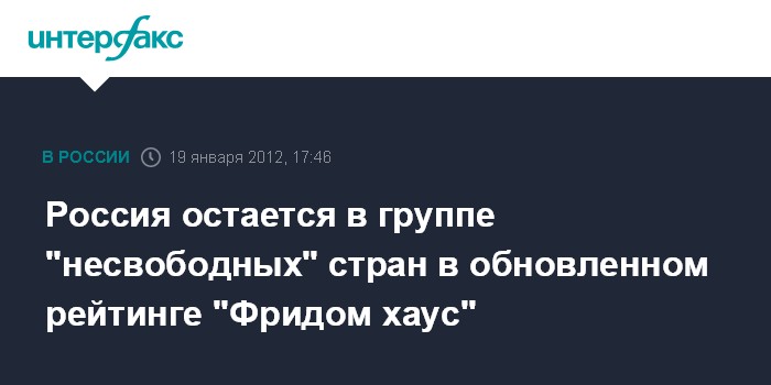 Вашингтон. 19 января. INTERFAX.RU - Россия и большинство республик СНГ остаются в группе "несвободных" стран в обновленном рейтинге правозащитной организации "Фридом хаус" за 2011 год.