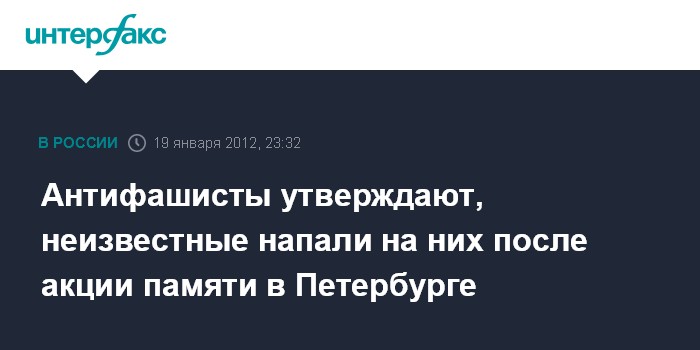 Санкт-Петербург. 19 января. INTERFAX.RU - Активисты, принимавшие участие в антифашисткой акции в Петербурге в четверг, утверждают, что подверглись нападению, предположительно, со стороны неонацистов в городском метро. Как сообщила "Интерфаксу" участница акции Светлана Кошелева, инцидент произошел вечером на станции метро "Маяковская".