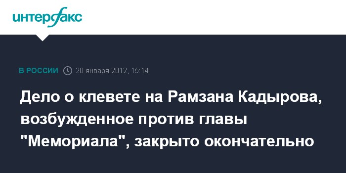 Дело о клевете на Рамзана Кадырова, возбужденное против главы "Мемориала", закрыто окончательно