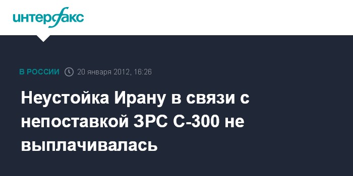 Неустойка Ирану в связи с непоставкой ЗРС С-300 не выплачивалась