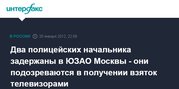Два полицейских начальника задержаны в ЮЗАО Москвы - они подозреваются в получении взяток телевизорами