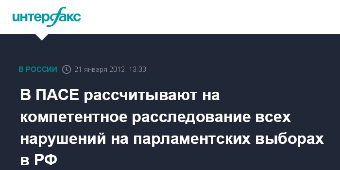 В ПАСЕ рассчитывают на компетентное расследование всех нарушений на парламентских выборах в РФ