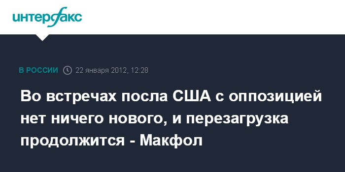 Во встречах посла США с оппозицией нет ничего нового, и перезагрузка продолжится - Макфол