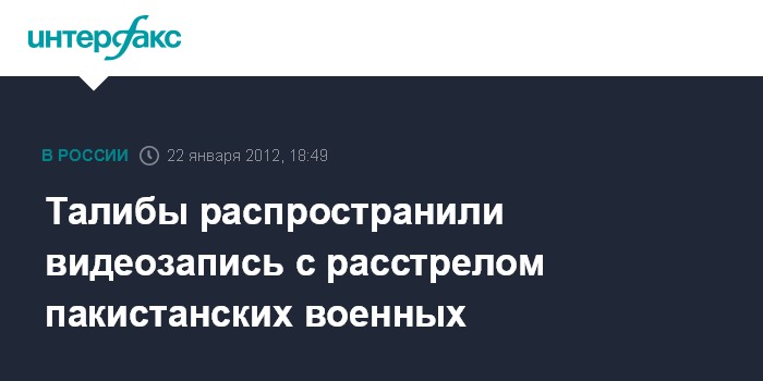 Лондон. 22 января. INTERFAX.RU - Движение "Талибан" распространило видеозапись, на которой запечатлен расстрел 15 пакистанских военных, захваченных в декабре 2011 года во время нападения на блокпост в районе города Танк на северо-востоке Пакистана, передает британская телерадиовещательная корпорация Би-би-си в воскресенье.